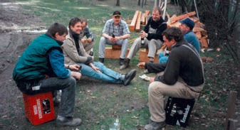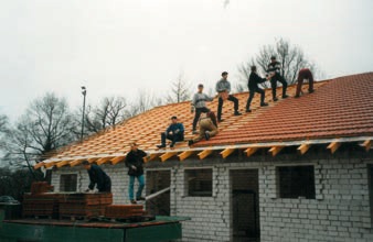 Das Clubhaus ist bald fertig. Ende des Jahres 1998 findet ein erstes Großreinemachen mit den fleißigen Helferinnen Sigrid Lichtendonk, Karin Lucas, Jenny Rötterink, Hildegard Lambers und Hanni Stroeve (von links) statt.